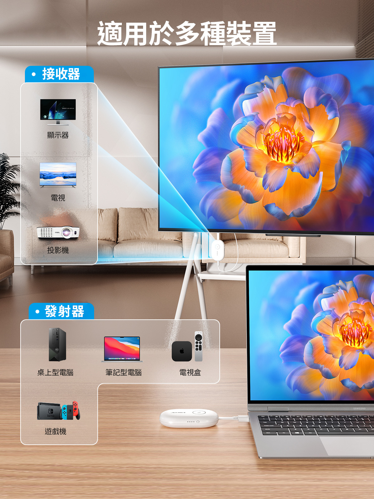 Lemorele G500真無線傳輸器,擁有獨家開發TX發射器內建2000mAh電池,連接手機或其它裝置不吃設備的電源,也因此設計可隨時於HDMI/Type C設備之間輕鬆轉換,是您辦公與娛樂的最佳夥伴